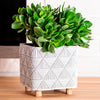 Om een jadeplant in een witte sierpot optimaal te verzorgen, plaatst u deze op een zonnige locatie en geeft u de plant weinig water. De Crassula ovata argentea gedijt goed met minimale verzorging en kan temperaturen tot -5°C verdragen, maar is niet winterhard, dus vermijd vorst. Deze kamerplant staat bekend om zijn luchtzuiverende eigenschappen en eenvoudige onderhoud. Geniet van het levendige groen dat perfect contrasteert met de witte pot en brengt een stukje natuur in huis.