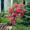 Om de bloei van de Stamroos Blue Violet te maximaliseren, plant je deze roos in een half-schaduwrijke plek met goed doorlatende grond. Zorg voor matige watergift om de wortels gezond te houden en bevorder de bloei door in het voorjaar te bemesten met een rozenmeststof. Het snoeien van dode of zwakke takken na de bloei stimuleert nieuwe groei en bloei. Met de juiste zorg kan de Stamroos Blue Violet een spectaculaire hoogte van 200 cm bereiken. Geniet van een weelderige bloei en het unieke violette schouwspel in uw tuin!